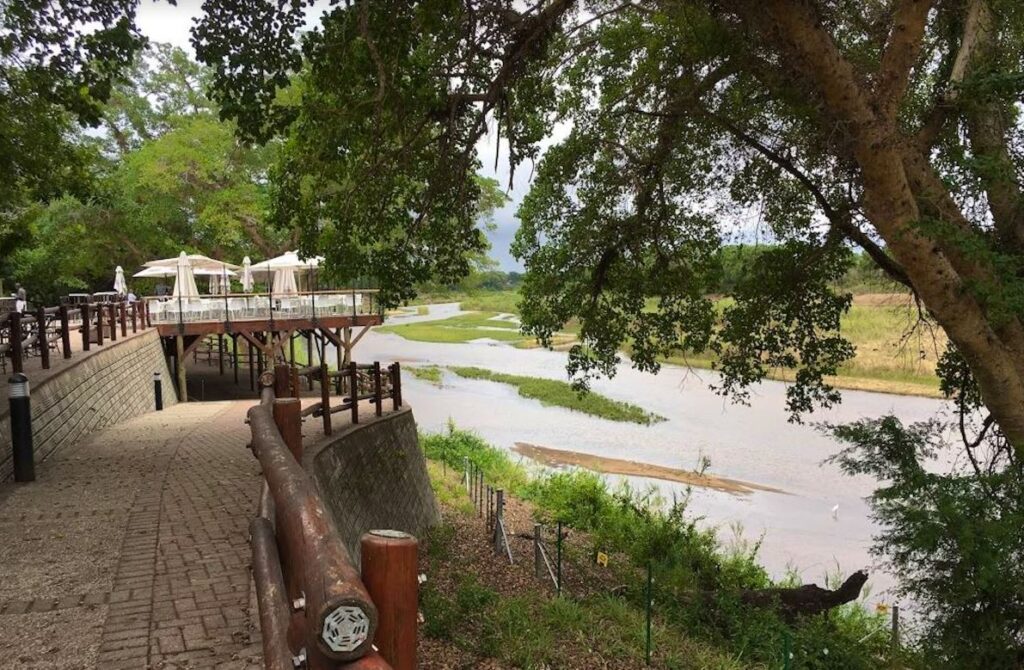 • Le restaurant, perché au-dessus de la rivière Sabie, est l’un des lieux les plus mémorables. On y dîne face aux hippopotames et aux crocodiles, avec parfois un éléphant qui traverse l’eau en arrière-plan. L’expérience culinaire devient une scène de safari en soi, unique dans le parc.