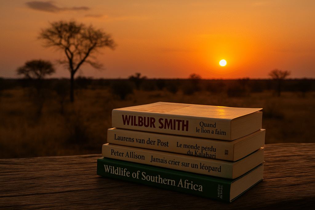 Quand on part au Kruger, on pense aux jumelles, à l’appareil photo… mais rarement aux livres. Pourtant, entre deux safaris, tu vas avoir des moments de calme parfaits, sur la terrasse d’un bungalow, dans l’avion qui t’y emmène, ou en attendant la tombée de la nuit. Et là, un bon bouquin, ça change tout. Certains t’embarquent directement en Afrique, d’autres te font voyager par l’imaginaire, et quelques-uns t’aident même à mieux comprendre les animaux que tu vois.